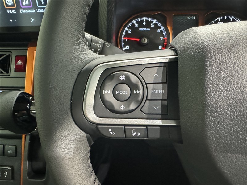 ステアリングスイッチ付き。前方から目を離すことなく操作することが可能です。