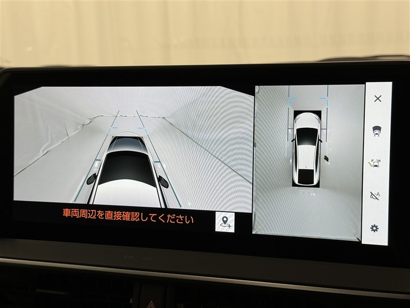 パノラミックビューモニターシステムが付いているので車の上から見た映像が確認できますよ。 一目で車両周辺の情報を確認できますが、直接安全をご確認下さい。