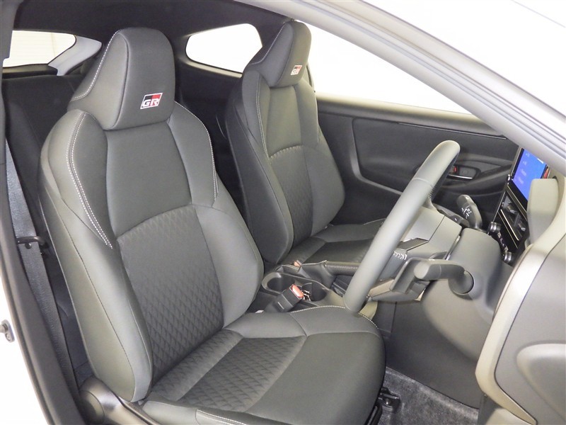 ファブリック素材のスポーツシートで身体をしっかりサポートしクルマとの一体感を生み、正確なステアリング操作に貢献します。