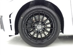 純正18インチ鋳造アルミホイールは多軸スポーク意匠でラリーイメージを強調しています。