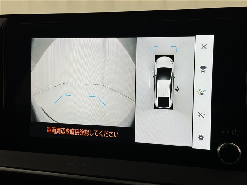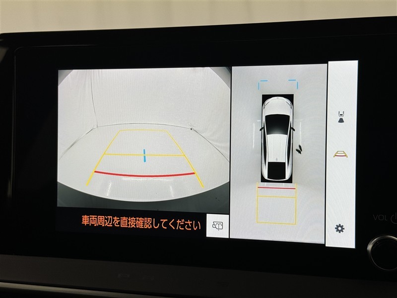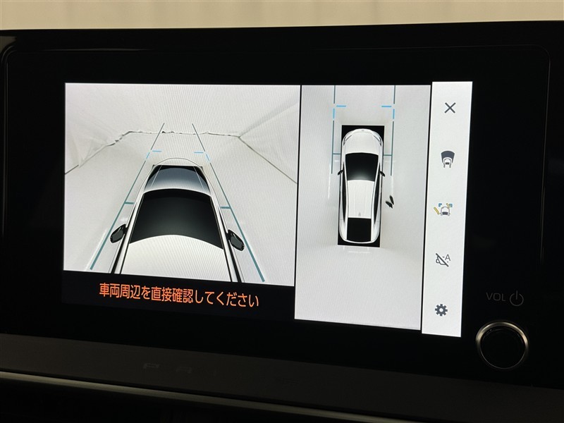 パノラミックビューモニターシステムが付いているので車の上から見た映像が確認できますよ。 一目で車両周辺の情報を確認できますが、直接安全をご確認下さい。