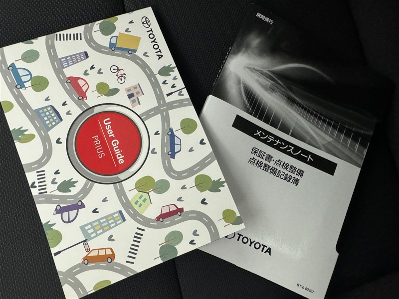 メンテナンスノート、取扱説明書です。 その車の整備記録が事細やかに記録されています。 車が生まれてから今までどのような道を歩んできたのか判るとても重要な物ですよ。