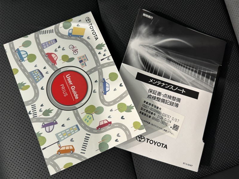 メンテナンスノート、取扱説明書ですね。 車の情報が凝縮されています。 車の整備記録が記載されている大事な物ですよ。