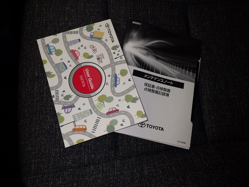 メンテナンスノート、取扱説明書です。 その車の整備記録が事細やかに記録されています。 車が生まれてから今までどのような道を歩んできたのか判るとても重要な物ですよ。