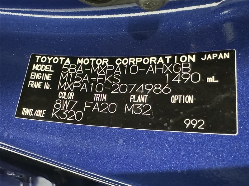 車台番号(下3桁)【986】