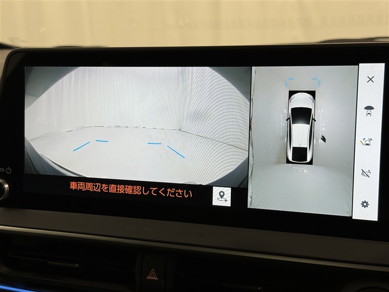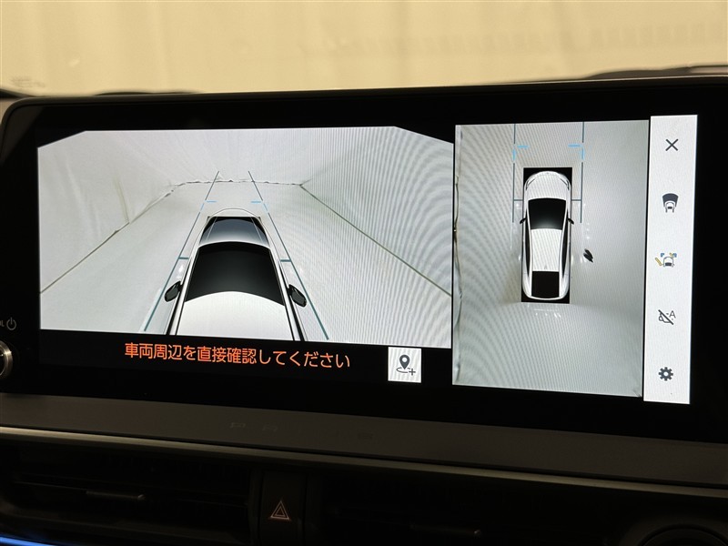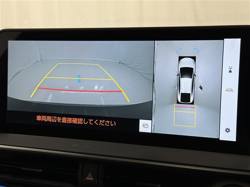 パノラミックビューモニターシステムが付いているので車の上から見た映像が確認できますよ。 一目で車両周辺の情報を確認できますが、直接安全をご確認下さい。