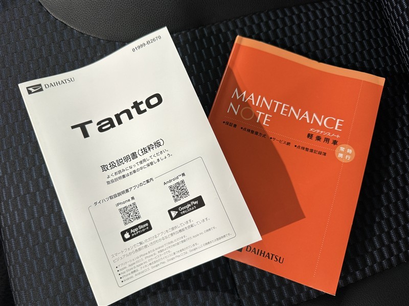 メンテナンスノート、取扱説明書です。 その車の整備記録が事細やかに記録されています。 車が生まれてから今までどのような道を歩んできたのか判るとても重要な物ですよ。