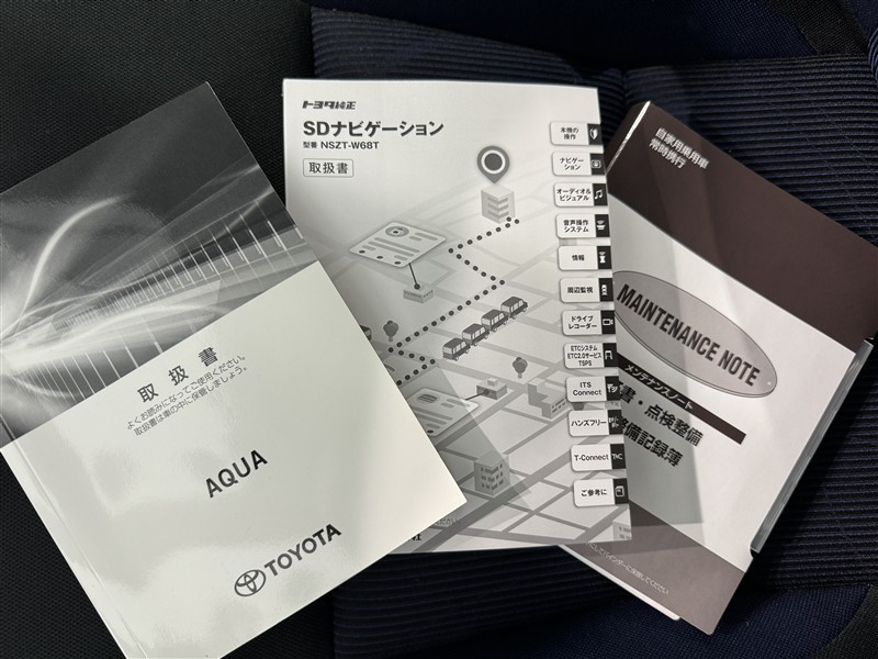 メンテナンスノート、取扱説明書です。 その車の整備記録が事細やかに記録されています。 車が生まれてから今までどのような道を歩んできたのか判るとても重要な物ですよ。