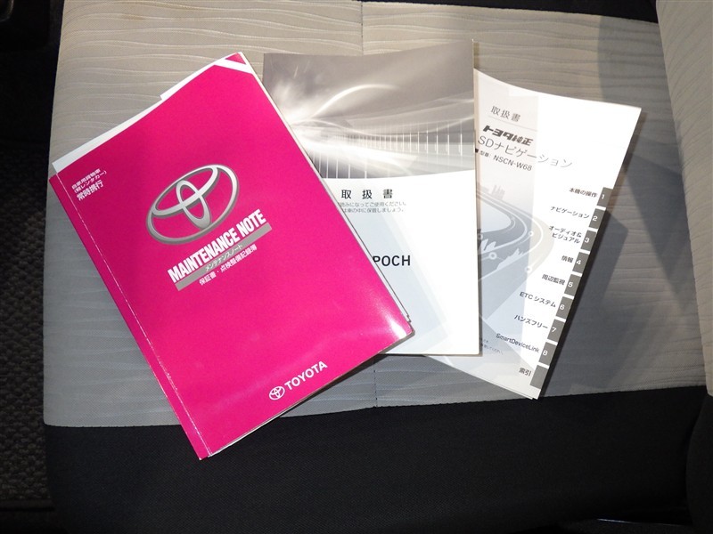 メンテナンスノート、取扱説明書ですね。 車の情報が凝縮されています。 車の整備記録が記載されている大事な物ですよ。