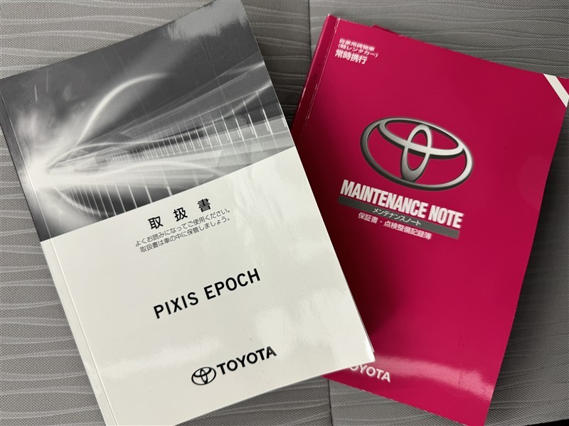 メンテナンスノート、取扱説明書です。 その車の整備記録が事細やかに記録されています。 車が生まれてから今までどのような道を歩んできたのか判るとても重要な物ですよ。