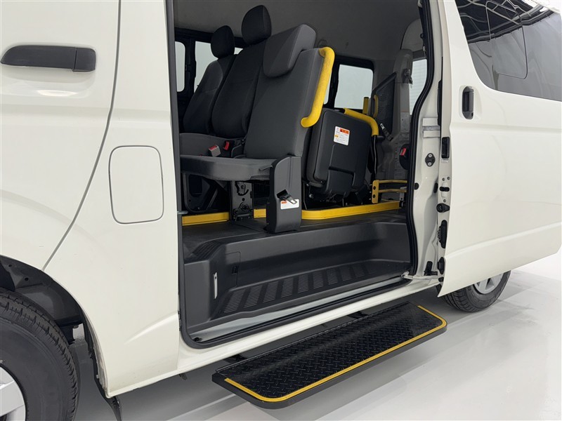 付添人用の跳ね上げシートや乗降をサポートするアシストグリップ付きです。