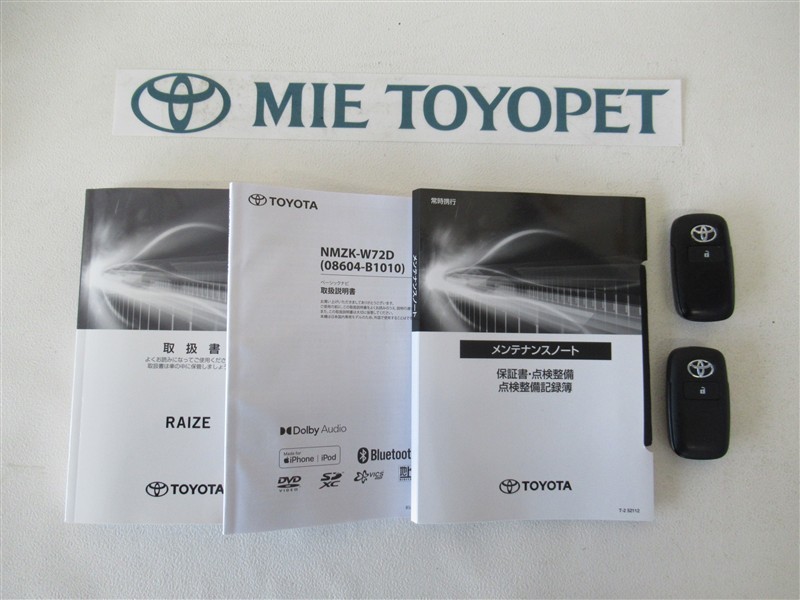取扱説明書、ナビ取扱説明書、メンテナンスノート、スペアキーもあります。 いかがですか?  お客様のご来店又はご連絡を心より三重トヨペットの各店舗にてお待ちしております。