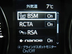 車線変更時などに、ドアミラーでは確認しにくい後側方エリア(ブラインドスポット)に存在する車両をレーダーで検知。警告サインをドアミラー等に表示することで、運転者に注意喚起する機能。