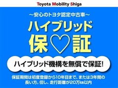 「中古車ハイブリッド保証」付き。ハイブリッド機構を無償で保証します。保証期間は、初度登録年月から10年目まで、または3年間の長い方。ただし累計走行距離が20万Km以内です。