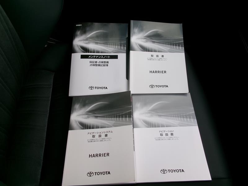 メンテナンスノート・保証書、車両取扱説明書・ナビゲーション取扱説明書です。お車の整備記録も記載されていて大切に乗られていた記録があると安心ですね。取扱説明書があると操作が分からないときに便利ですね!
