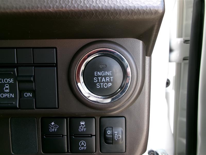 スマートキー&プッシュスタートスイッチ。鍵を取り出す手間が省け、ドアノブに触れるだけでドアの開錠や施錠ができます。荷物を沢山持っているときや、雨天時にも助かりますね。