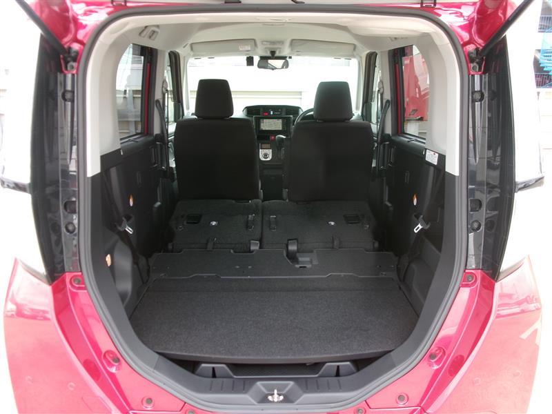 後席を倒すと収納力がアップします。長尺物も積めるのでカーライフの幅が広がりますね。