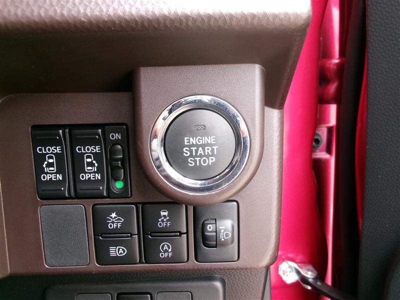 スマートキー&プッシュスタートスイッチ。鍵を取り出す手間が省け、ドアノブに触れるだけでドアの開錠や施錠ができます。荷物を沢山持っているときや、雨天時にも助かりますね。