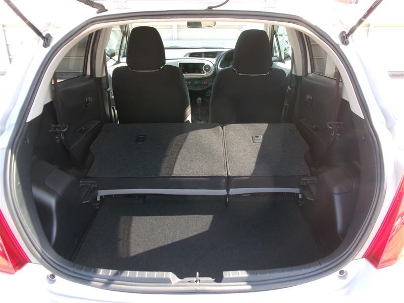 後席を倒すと収納力がアップします。長尺物も積めるのでカーライフの幅が広がりますね。