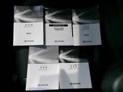 メンテナンスノート・保証書、車両取扱説明書・ナビゲーション取扱説明書です。お車の整備記録も記載されていて大切に乗られていた記録があると安心ですね。取扱説明書があると操作が分からないときに便利ですね!