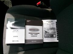 メンテナンスノート・保証書、車両取扱説明書・ナビゲーション取扱説明書です。取扱説明書があると操作が分からないときに便利ですね!