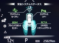 車線変更時などに、ドアミラーでは確認しにくい後側方エリア(ブラインドスポット)に存在する車両をレーダーで検知。警告サインをドアミラー等に表示することで、運転者に注意喚起する機能。