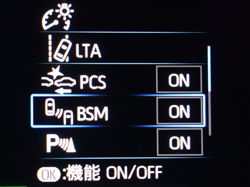 車線変更時などに、ドアミラーでは確認しにくい後側方エリア(ブラインドスポット)に存在する車両をレーダーで検知。警告サインをドアミラー等に表示することで、運転者に注意喚起する機能。