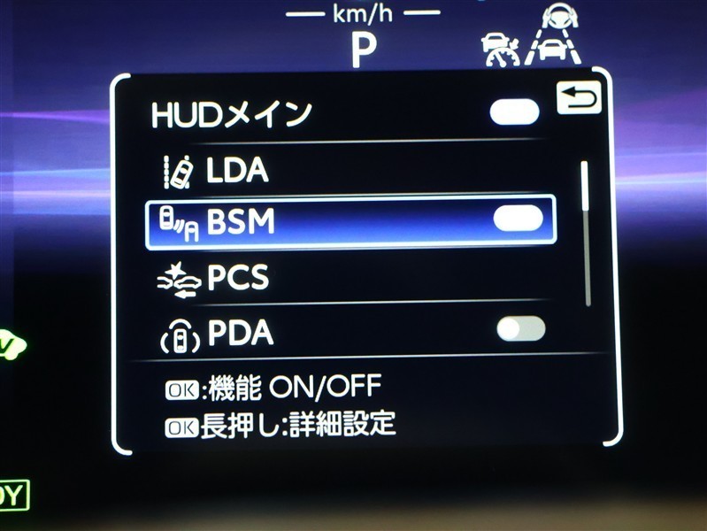 車線変更時などに、ドアミラーでは確認しにくい後側方エリア(ブラインドスポット)に存在する車両をレーダーで検知。警告サインをドアミラー等に表示することで、運転者に注意喚起する機能。