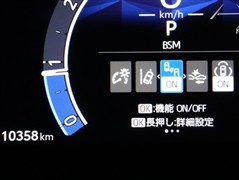 車線変更時などに、ドアミラーでは確認しにくい後側方エリア(ブラインドスポット)に存在する車両をレーダーで検知。警告サインをドアミラー等に表示することで、運転者に注意喚起する機能。