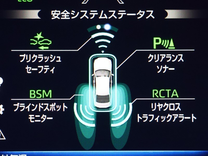 車線変更時などに、ドアミラーでは確認しにくい後側方エリア(ブラインドスポット)に存在する車両をレーダーで検知。警告サインをドアミラー等に表示することで、運転者に注意喚起する機能。