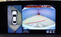 複数のカメラの映像を合成して、クルマの真上から見ているような映像をドライバーに提供する機能。
