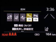 車線変更時などに、ドアミラーでは確認しにくい後側方エリア(ブラインドスポット)に存在する車両をレーダーで検知。警告サインをドアミラー等に表示することで、運転者に注意喚起する機能。