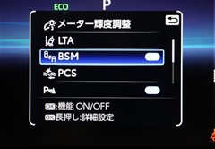 車線変更時などに、ドアミラーでは確認しにくい後側方エリア(ブラインドスポット)に存在する車両をレーダーで検知。警告サインをドアミラー等に表示することで、運転者に注意喚起する機能。