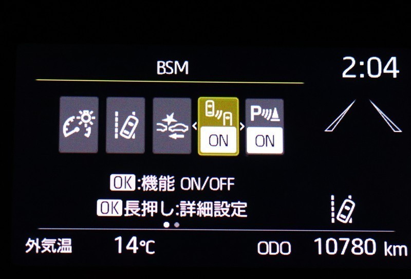 車線変更時などに、ドアミラーでは確認しにくい後側方エリア(ブラインドスポット)に存在する車両をレーダーで検知。警告サインをドアミラー等に表示することで、運転者に注意喚起する機能。