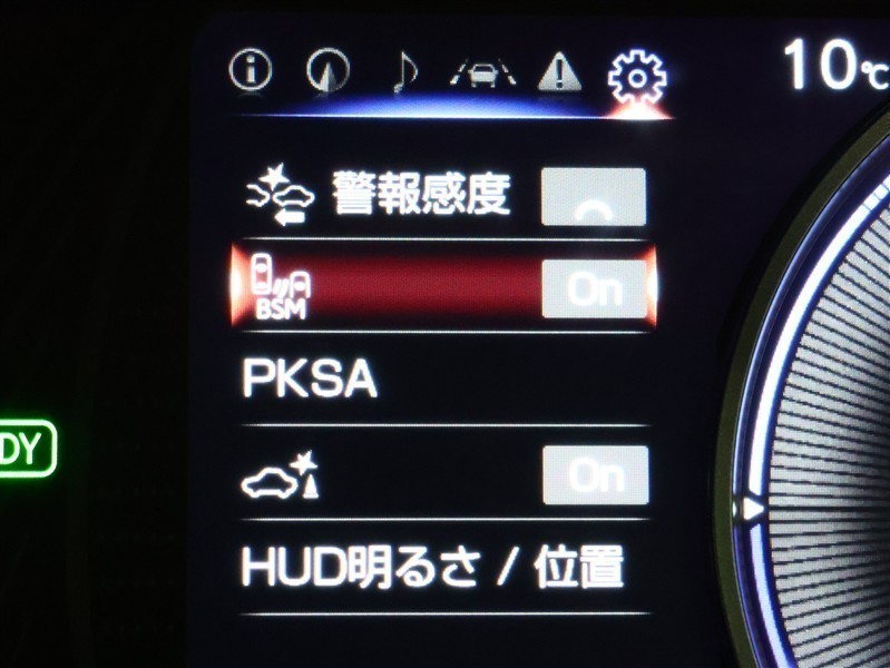 車線変更時などに、ドアミラーでは確認しにくい後側方エリア(ブラインドスポット)に存在する車両をレーダーで検知。警告サインをドアミラー等に表示することで、運転者に注意喚起する機能。