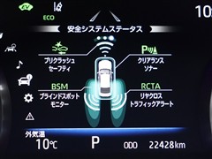 車線変更時などに、ドアミラーでは確認しにくい後側方エリア(ブラインドスポット)に存在する車両をレーダーで検知。警告サインをドアミラー等に表示することで、運転者に注意喚起する機能。