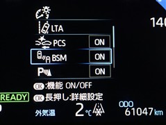 車線変更時などに、ドアミラーでは確認しにくい後側方エリア(ブラインドスポット)に存在する車両をレーダーで検知。警告サインをドアミラー等に表示することで、運転者に注意喚起する機能。