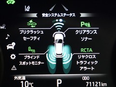 車線変更時などに、ドアミラーでは確認しにくい後側方エリア(ブラインドスポット)に存在する車両をレーダーで検知。警告サインをドアミラー等に表示することで、運転者に注意喚起する機能。