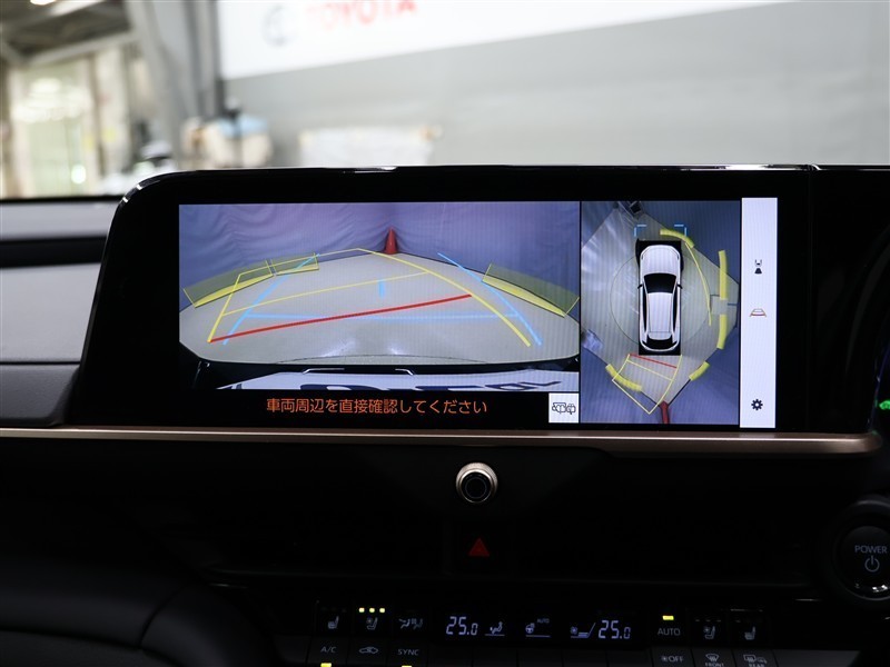 左右のドアミラーに設置されたカメラからの映像を表示し、路肩への幅寄せや狭い路地でのすれ違いなど、車両側方の安全確認や接触回避の操作をサポートするモードでドアミラー格納状態でも映し出せます。