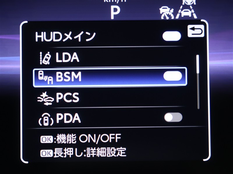 車線変更時などに、ドアミラーでは確認しにくい後側方エリア(ブラインドスポット)に存在する車両をレーダーで検知。警告サインをドアミラー等に表示することで、運転者に注意喚起する機能。
