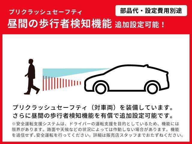 この車両はプリクラッシュセーフティ(対車両)搭載車で、更に有償で(昼間)対歩行者付にアップグレードが可能です!詳しくは店頭スタッフにお尋ね下さい。