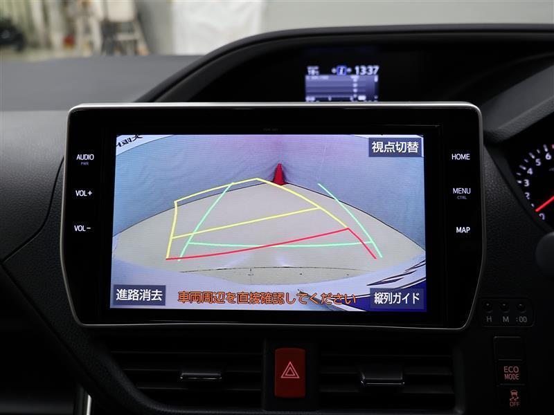 カラーバックガイドモニター装着車は後退時の強い味方です♪車庫入れや縦列駐車の際、後退操作の参考になるガイドラインをナビ画面に表示します。後退時には直接後方を確認してくださいね♪