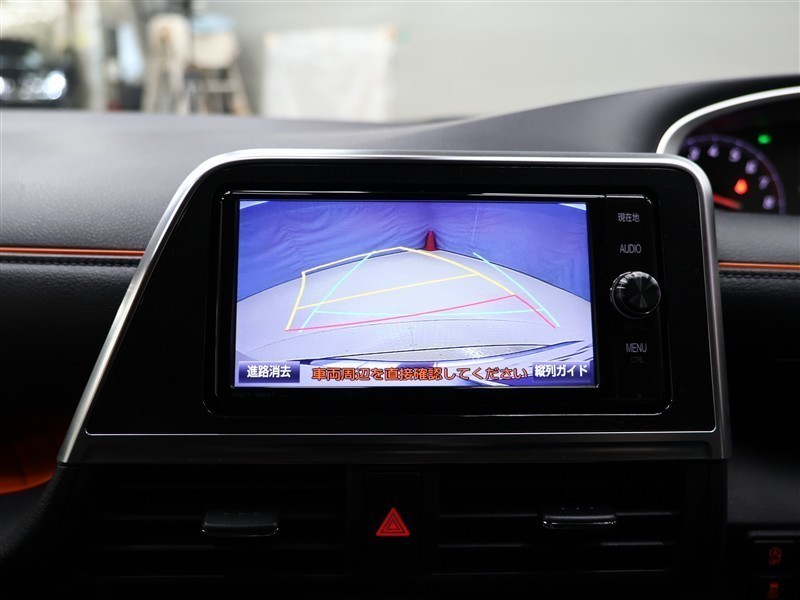 カラーバックガイドモニター装着車は後退時の強い味方です♪車庫入れや縦列駐車の際、後退操作の参考になるガイドラインをナビ画面に表示します。後退時には直接後方を確認してくださいね♪