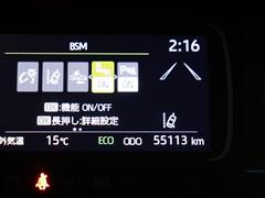 車線変更時などに、ドアミラーでは確認しにくい後側方エリア(ブラインドスポット)に存在する車両をレーダーで検知。警告サインをドアミラー等に表示することで、運転者に注意喚起する機能。