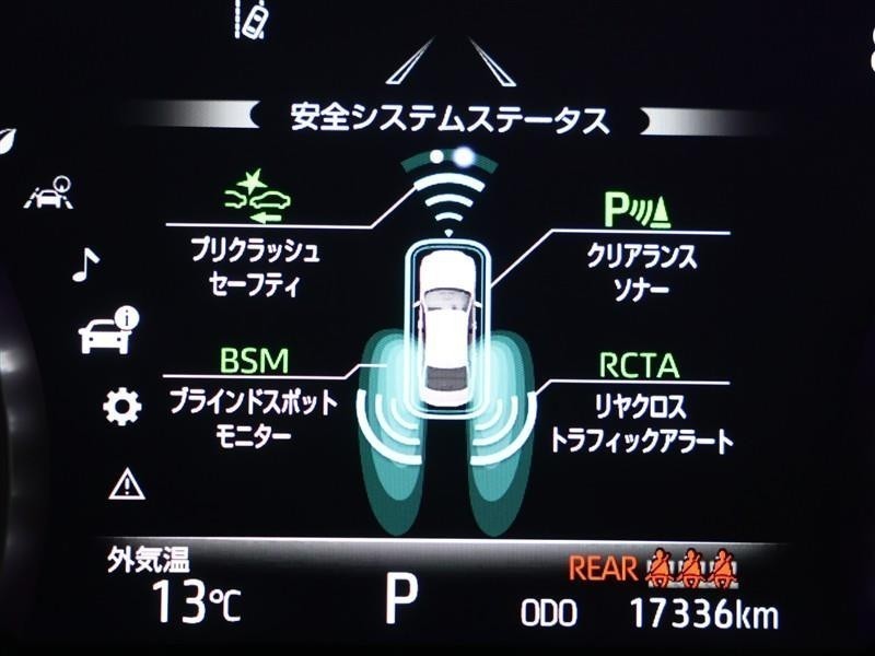アドバンスト パーク付きです。カメラやソナーによって、周囲を監視しながら駐車を支援。障害物を検知した場合には警報を鳴らし、ブレーキ制御を行うことで接触回避を支援します。