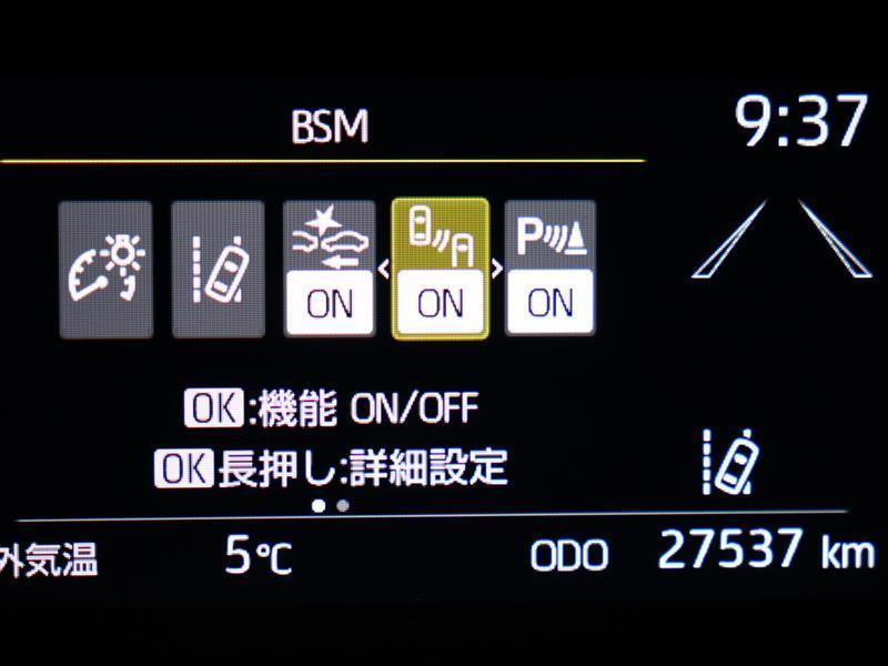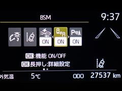 車線変更時などに、ドアミラーでは確認しにくい後側方エリア(ブラインドスポット)に存在する車両をレーダーで検知。警告サインをドアミラー等に表示することで、運転者に注意喚起する機能。