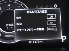 車線変更時などに、ドアミラーでは確認しにくい後側方エリア(ブラインドスポット)に存在する車両をレーダーで検知。警告サインをドアミラー等に表示することで、運転者に注意喚起する機能。