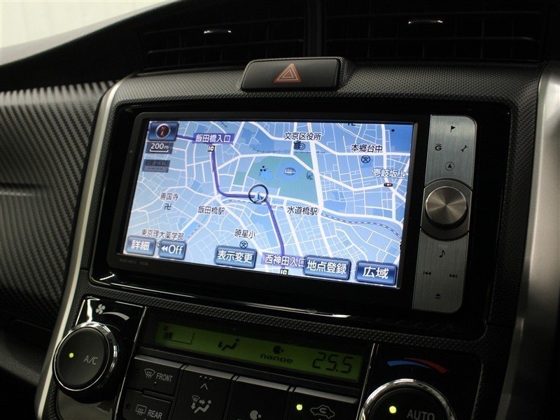 安全を考慮し、視線移動の少ない位置にセットされた純正HDDナビ!CD、DVDビデオ、フルセグTVに対応しています。