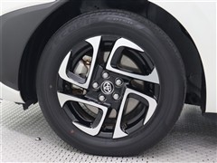 メーカーオプションの15インチアルミホイール(切削光輝+ブラック塗装/センターオーナメント付)を装着しています。タイヤサイズ185/65R15