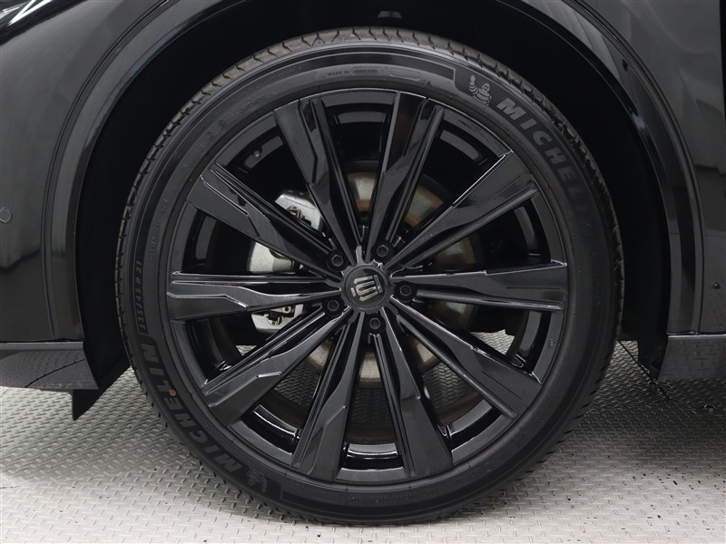 21インチアルミホイール(グロスブラック塗装)&センターオーナメントが装着されています。タイヤサイズ235/45R21